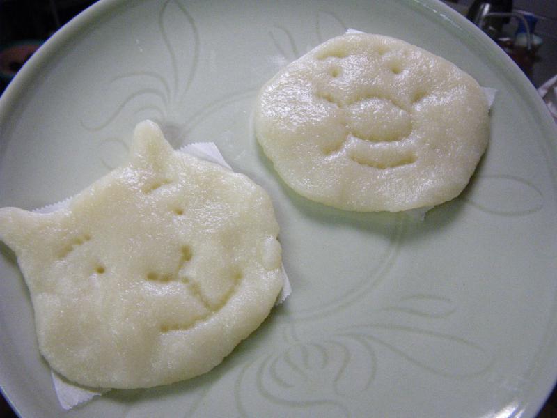だんごの皮で作ったアンパンマンとユキちゃんが、小僧の朝メシ前。