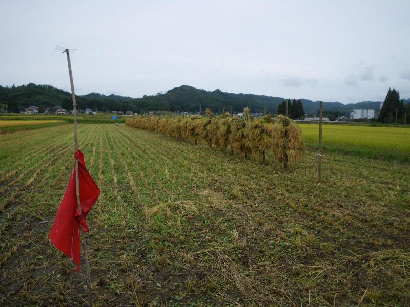 午前中はおととい終わらせたモチ米の杭掛けをチェック。