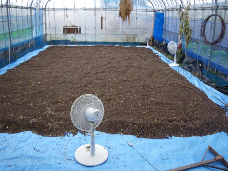 2週間、ハウスの中でゆっくり自然乾燥させて、唐箕でごみを飛ばし