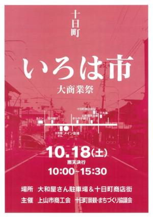 上山市商工会、十日町景観・まちづくり協議会の主催により、「十日町いろは市」を開催します。ぜひ、お越し下さい。