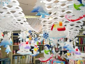 鍋屋さんの店内が、冬のイメージでディスプレイされています。