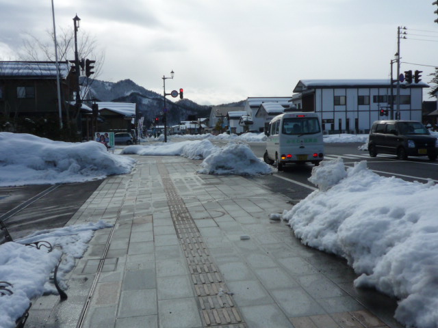 高畠町のまほろば商店街の新商工会館前から南側を望みます。 歩道は、無散水消雪になっています。