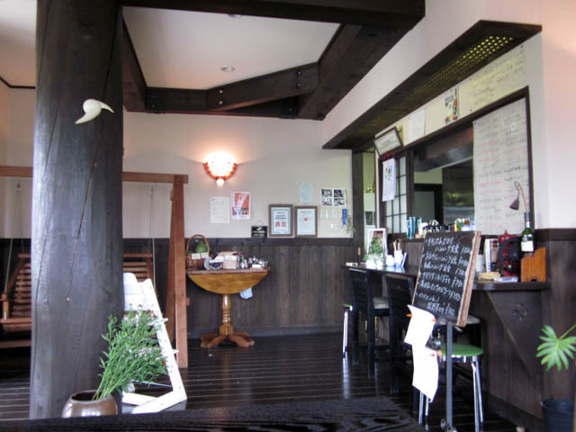 奥にブランコがあります〜 テーブル席が3つとカウンターが2席といった かわいらしいサイズのきれいなお店です。 本も何冊か置いてあり、 時間があればゆっくりしていきたいところですね。