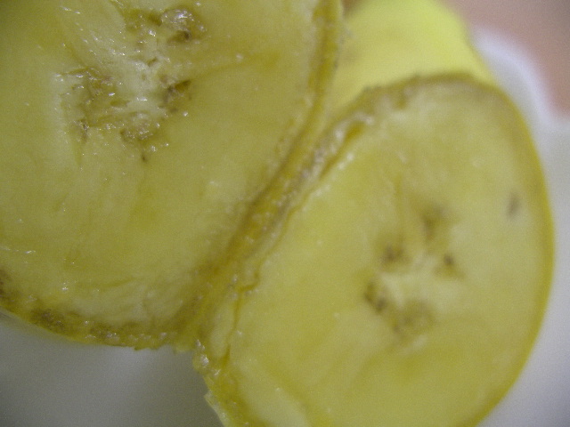 オリートは長さが15cmほどの小さいバナナ。皮を剥くと中には黄金色の果肉が現れます。