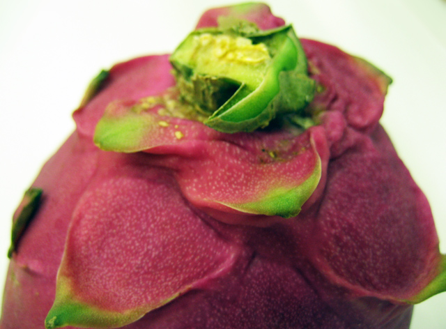 ドラゴンフルーツの頭のてっぺんです!花とつぼみも食べられるフルーツです。