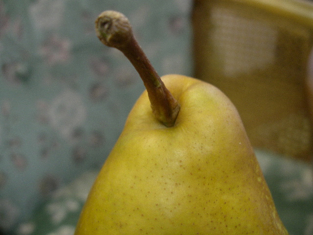 オーロラの頭のてっぺんです。青から黄色い色合いに変わると食べごろです。オーロラの芳香が強くなります。