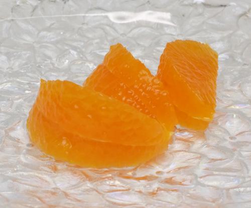 [画像]麗紅はどんな味ですか?果肉はずっしりと重みがあって、赤みのある橙色なんだ。果汁たっぷり、とっても甘いんだけど酸味も隠れていて複雑な味わいなんだ。皮は剥きやすくて、薄皮は食べている内に消えて気にならないよ。 ●画像 (大 中 小) ●2014.01.28 ● ●編集