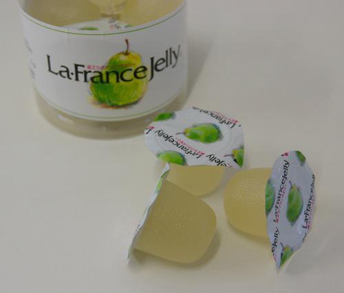 ラフランスの風味をそのまま閉じ込めたゼリー。
