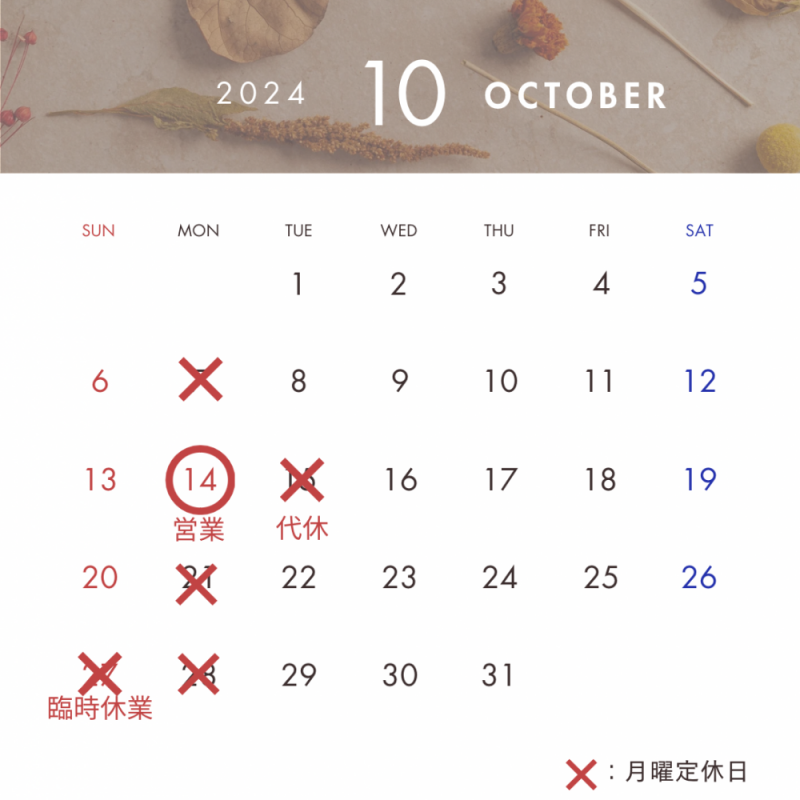 ▼10月営業日カレンダー