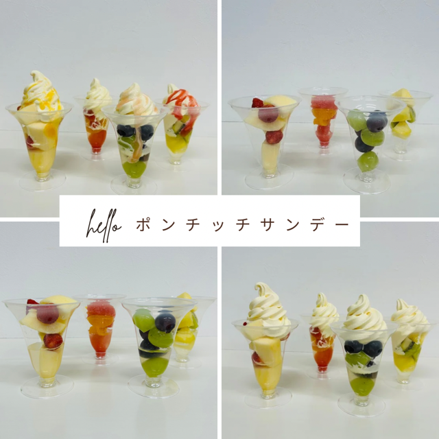 おかげさまで今月、フルッティアは25周年を迎えます。そこで、感謝企画第1弾!【11月2日・3日・4日の3日間】フルーツをたくさん食べてほしいから。。。新登場!《ポンチッチサンデー》540円のところ全種類5%OFFご来店をお待ちしています♪
