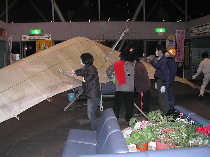続いて駅コンコース側のハングへ。こちらは花壇があったりして場所を確保するのに大変です。 駅長さん、女将さん、旅館組合さん、スタッフの皆さん、夜中まで大変お疲れ様でした!