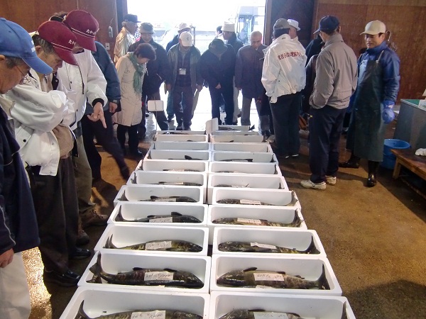 10月中旬から12月上旬にかけて、上流に戻ってきた鮭が捕獲されます。獲れたての鮭がずらりと並んでいます。1匹1匹の値段の違いに驚きです。