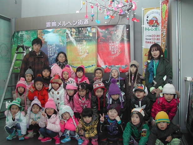 出来上がった”だんごの木”の前で記念撮影です。ありがとうございました! 園児の力作をぜひご覧ください♪
