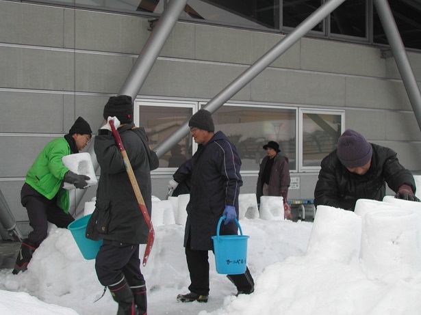 今年は雪が豊富にあり、駅前周辺にどんどんミニかまくらが出来ていきます。点灯が楽しみです♪