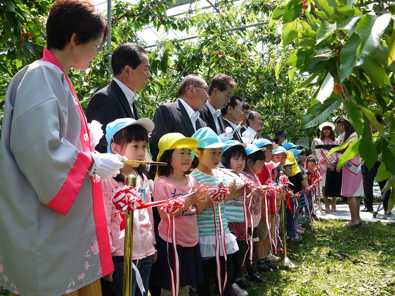 オープンに合わせて、観光さくらんぼ園の開園式が執り行われました。