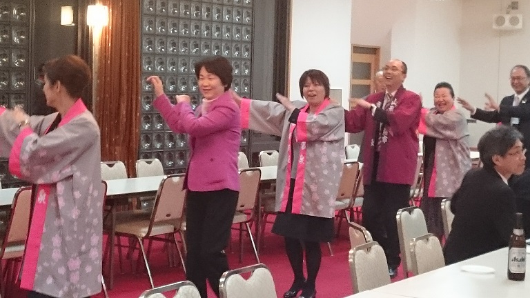 赤湯温泉女将さんと共に、皆さんで「赤湯音頭」を踊っていただきました。