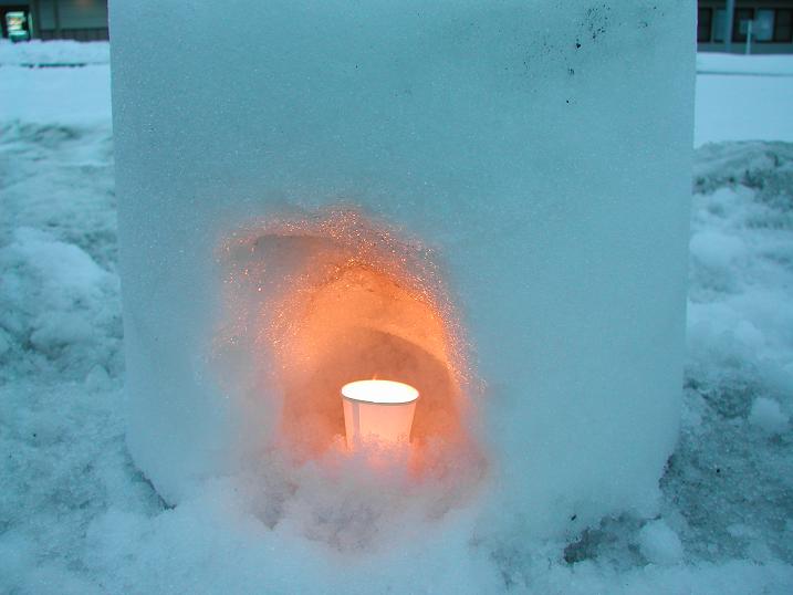 夕方5時を向かえて、いよいよかまくらに灯が灯されていきます。日が長くなりまだ明るいうちなので、暗くなってからがまた楽しみです。