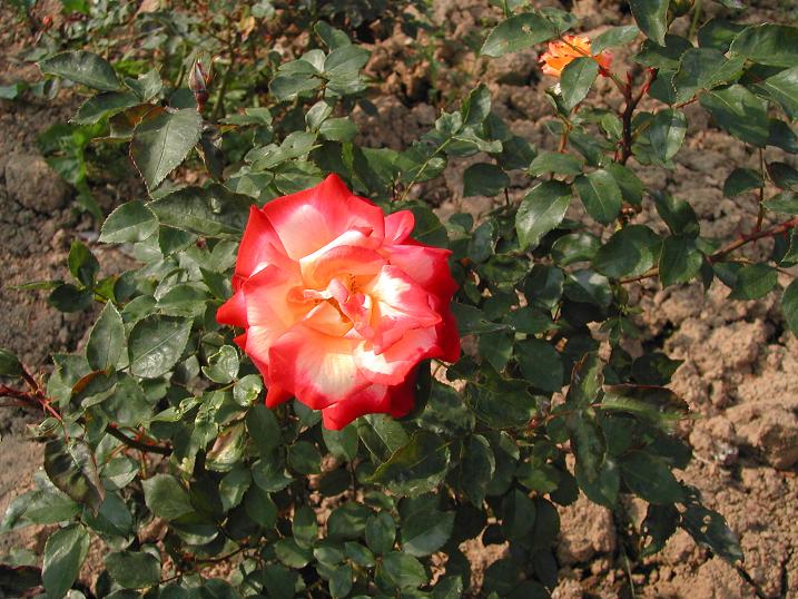 赤と黄色のグラデーションが綺麗なバラです。
