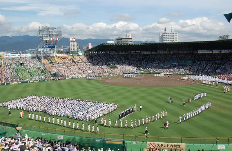 元気な若者を見てきました。写真のこの行進が終わって、900数十名が外野(この位置)からホームベースに向かって一団となっての行進に還暦親父は一番感動!