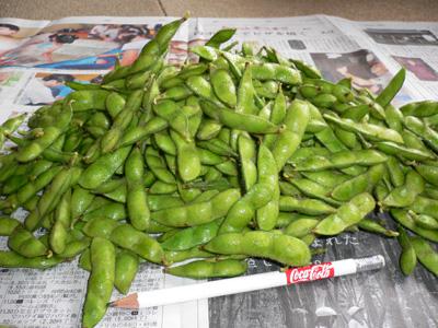 昼ごろお茶のみにござったSさんに枝豆、これは茹でて塩を振って