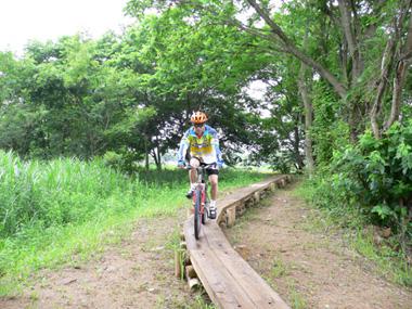 乗ったまま渡りきると、1本橋(縦20m、横40cm)
