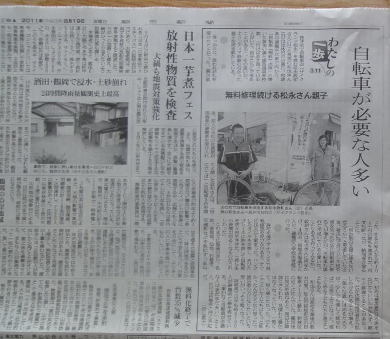 被災地での自転車修理ボランティアが取り上げられました。