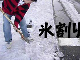 この大雪で硬く氷になった部分にシャベルでは割れず、