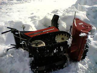 除雪機の修理、真下になるのでトラックの荷台へ