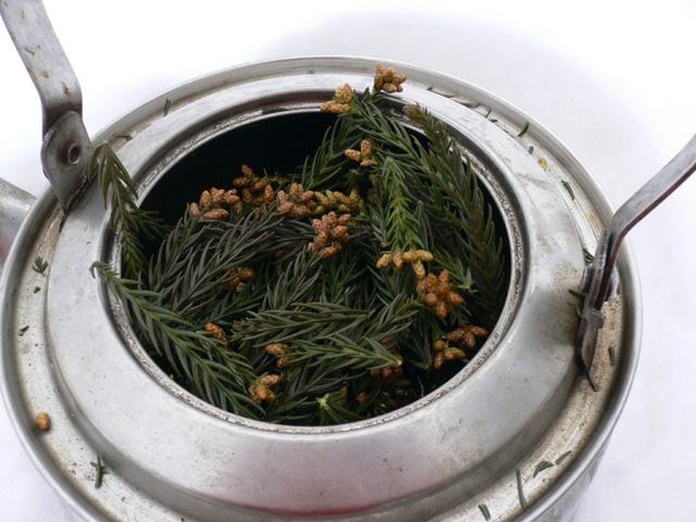 昨年は茶色い枝の部分も一緒に煎じたら、