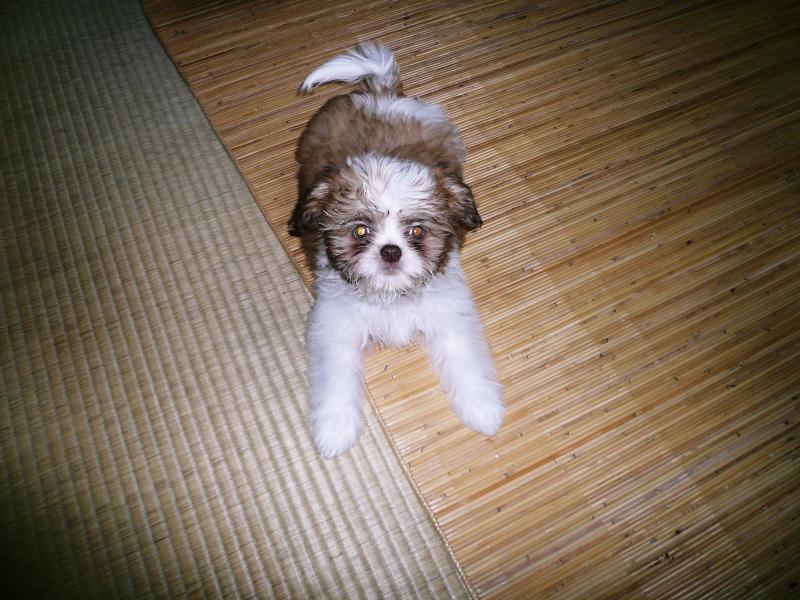 初めてのお外は、ぼく、ブルブル震えてました。寒くはなかったんだけど、ものすご〜く怖かったの。でも、お母さんといっぱい走ったよ。