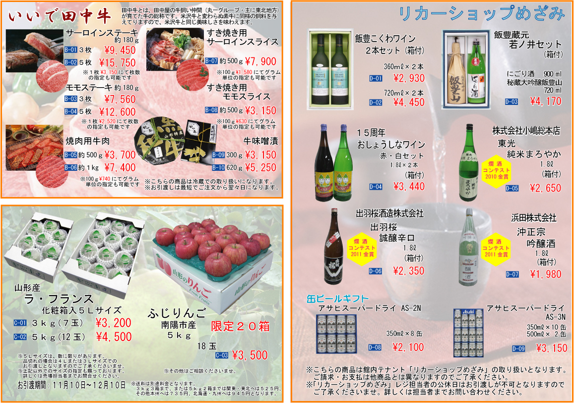 お肉・ラフランス・ワイン・日本酒 等も 取り揃えております!