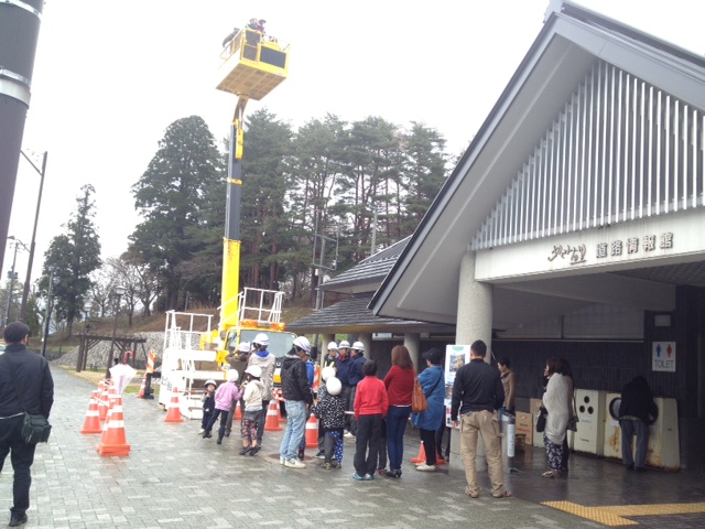 左奥に見える黄色いゴンドラは 本日限定≪ トンネル点検車 ≫体験乗車です。 子供から大人の方までたくさんのお客様にお乗りいただきました。