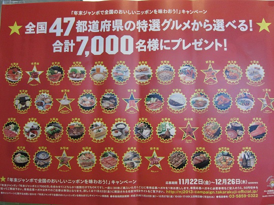 今回のジャンボでは 全国47都道府県の特選グルメが 抽選で7000名様に当たるキャンペーン もあります!! こちらは 年末ジャンボまたは年末ジャンボミニを 合わせて30枚以上ご購入いただいた方を 対象に、専用応募はがきでご応募いただくものです。 ぜひ応募してみては!?