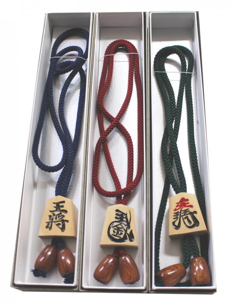 商品説明:天童将棋駒の伝統工芸士・国井天竜氏が手作りする将棋駒の形をしたループタイです。おもては「王将」「左馬」「咲き分け王将」のいずれか、ひもの色は「紺」「緋色」「深緑」の3色からお選びいただき、「備考欄」にご記入ください。