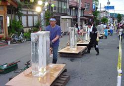 巨大な氷を巨大なノミやノコギリなどを駆使し、作品に仕上げていくわけです。