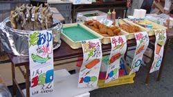 若鮎の塩焼き、豚肩ロース串揚げ、海老串揚げ、牛肉コロッケといったオツマミ系が目白押し。生ビールとあわせてどうぞでした。