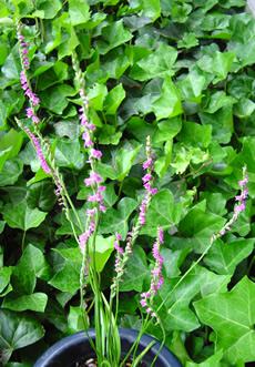 淡紅色の多数の花が螺旋状に咲き上がります。