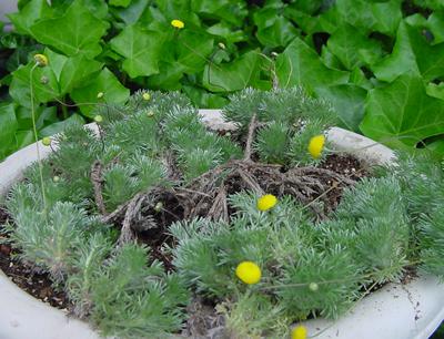 銀葉の丸く茂った株から針金のような茎を出して、先に黄色くて丸い花を咲かせます。