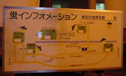 写真は、インフォメーションセンター『片葉の葦』の隣にある『ほたるインフォメーション』です。ゲンジボタル、ヘイケボタル、ヒメボタル、それぞれ生息地域が異なるので時期によって鑑賞ポイントが変わります。参考になさってください。