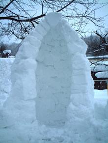 小野川が誇る雪の匠、その1人が1日かけて仕上げた極上の『ぷちくら』です。本来ならば捨ててしまうはずの大かまくら内部のブロック状の雪。それを丹念に成形しなおしては積み上げて作った傑作です。絶好の撮影スポットになることでしょう。