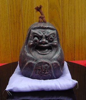目が飛び出すという達磨の鈴です。口の辺りがリアルです。陶志郎作。