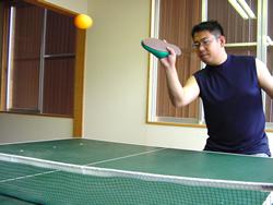 写真はスリッパ卓球において、小野川の第一人者といわれるO氏です。