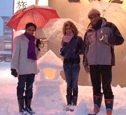 旅の思い出に雪灯篭に点灯していただきました。