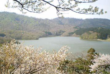 大山公園の下池と桜の写真。大山公園さくらまつりでは