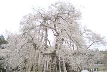樹齢1200年の巨大な老木。今年も長々と置賜さくら回廊を眺めて