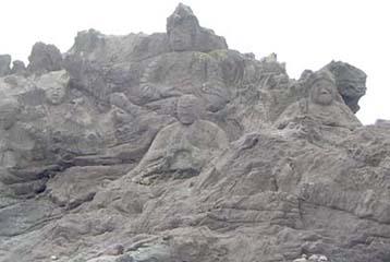 山形県遊佐町の日本海側には、十六羅漢岩という岩を彫った大きな