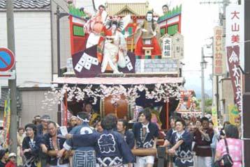 大山の地域内を通り、後続から山車が2台通過していく内容であった。