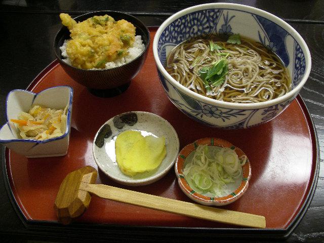 かき揚げ天丼つきのオススメセットです。