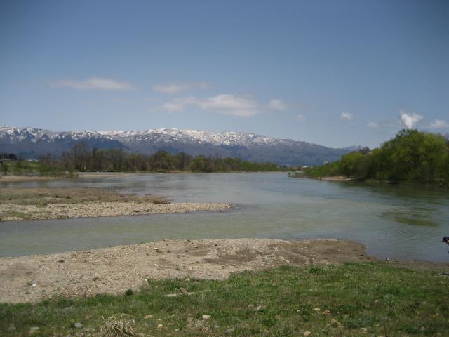 松川と白川が合流し、ゆるやかなS字を描きながら流れてゆきます。