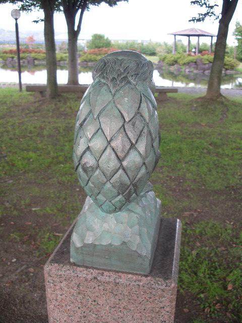 カッパの背中です。公園の東屋を向いてます。